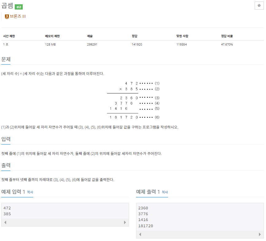 문자열을 int형으로 바꿔주어 A와 곱해준 값을 출력하면 된다.