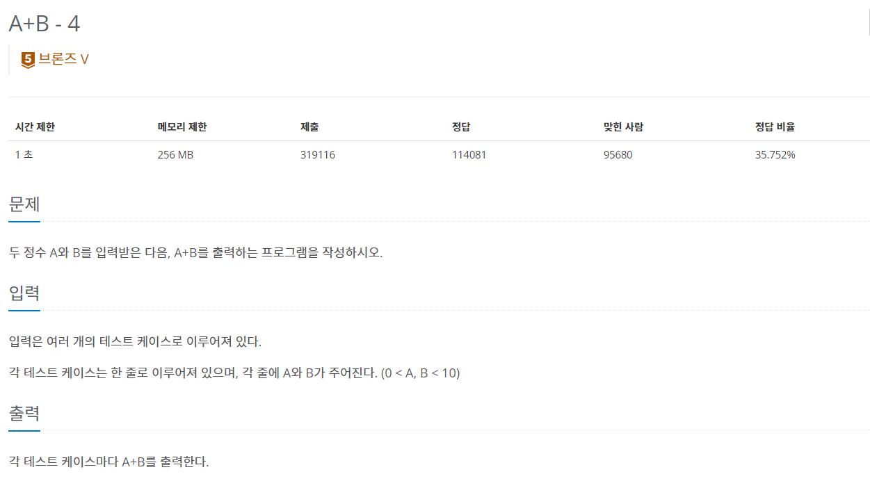 a+b -4 인 만큼, 더하는 법은 알게 되었는데 이전 예제들처럼 for문을 쓰기 위해서는 몇 번을 반복했는지를 나타내는 첫 줄이 필요하다. 몇 번 반복해야 하는지 알려주지 않을 때 어떻게 해결할래?라고 묻는 문제인 것이다.