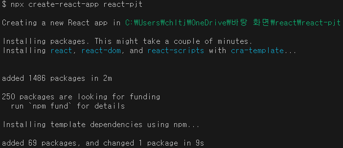 project-name 이라는 디렉토리가 생성되고, 그 안에 리액트 프로젝트가 생성된다.