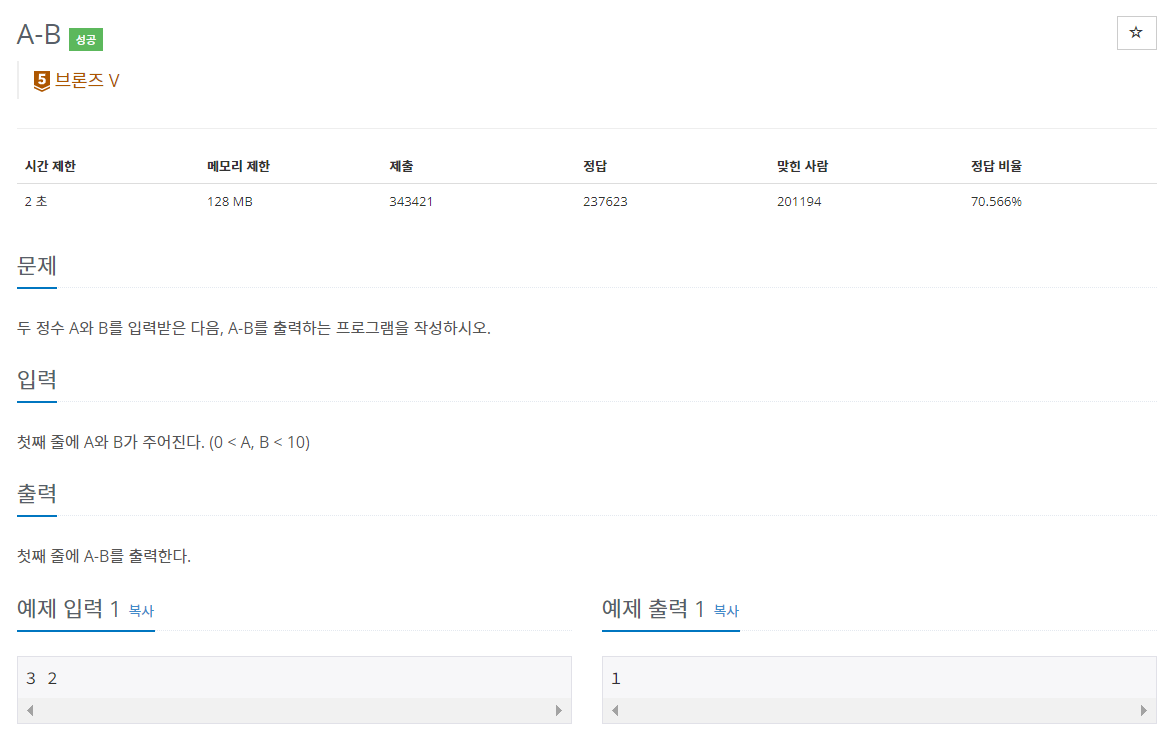 두 정수 A와 B를 입력받은 다음, A-B를 출력하는 프로그램을 작성하시오.
