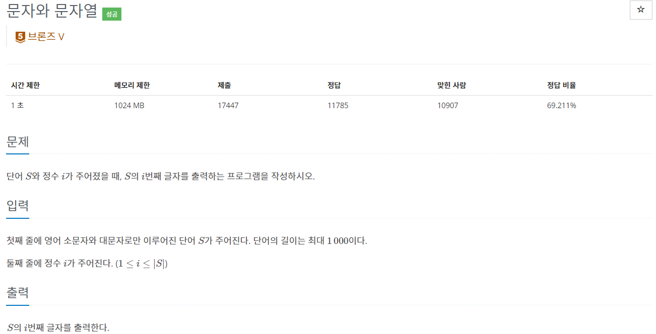 백준 [27866] 문자와 문자열 - 자바 풀이
