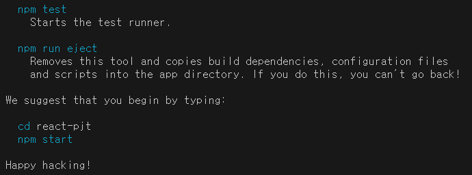 project-name 이라는 디렉토리가 생성되고, 그 안에 리액트 프로젝트가 생성된다.